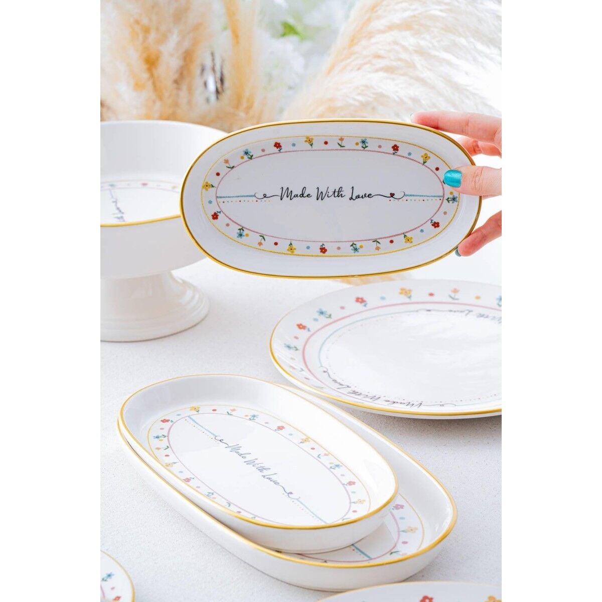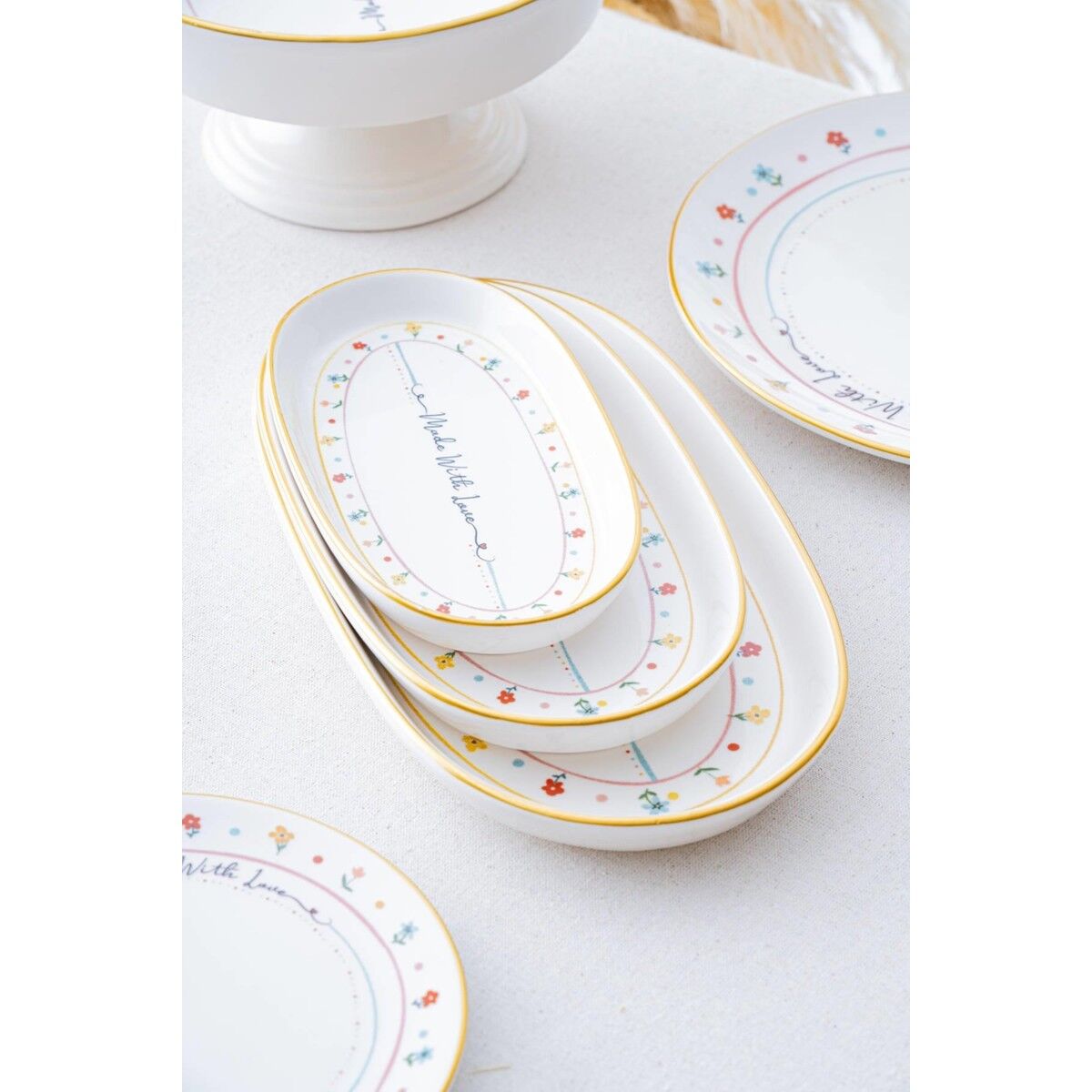 Acar Livaldi 3 Parça Beyaz Seramik Kayık Tabak Seti - 21x11 cm, 26x14 cm, 31x17 cm