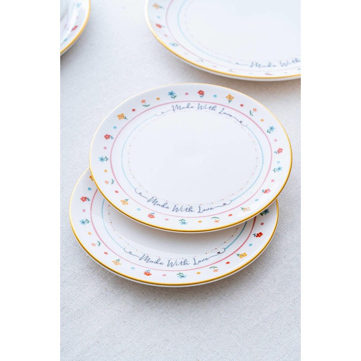 Acar Livaldi 6'lı Beyaz Seramik Pasta Tabağı 19 cm Yuvarlak Çiçek Desenli Şık Tasarım