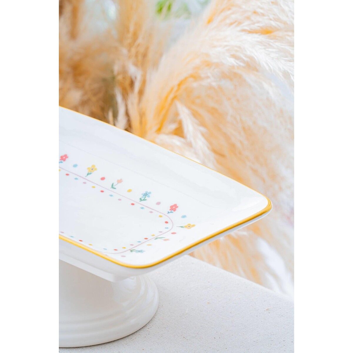 Acar Livaldi Ayaklı Sunum Tabağı Seramik Yuvarlak 28 cm Çiçek Desenli Şık Tasarım