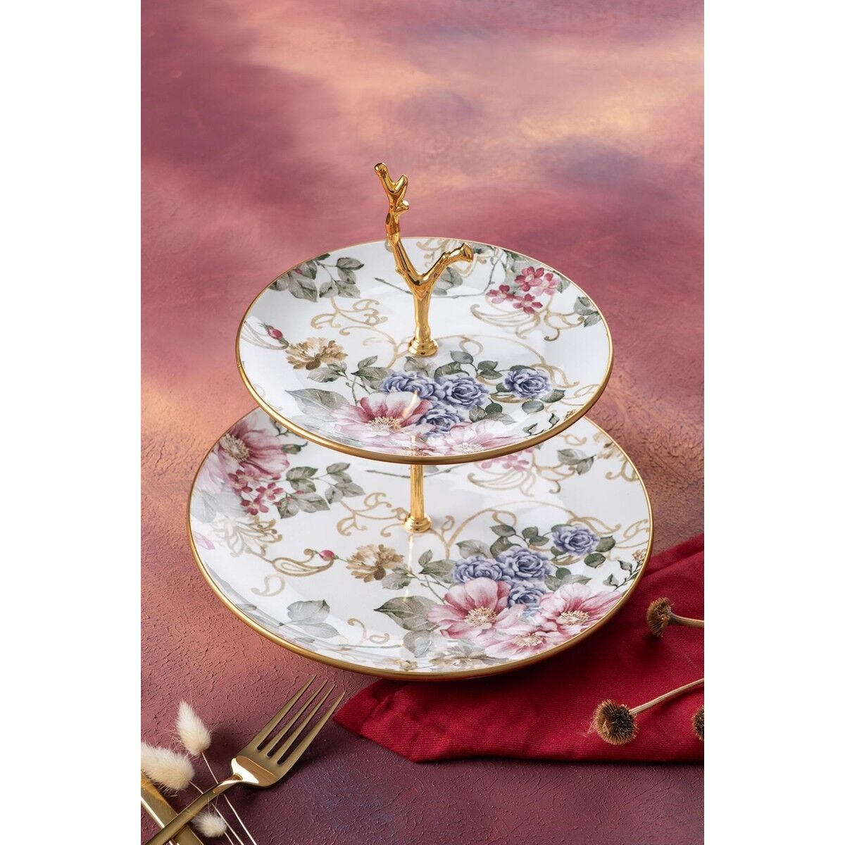 Acar Rosa Katlı Kurabiyelik Seramik Malzeme ile 23 cm Çiçek Desenli Şık Tasarım