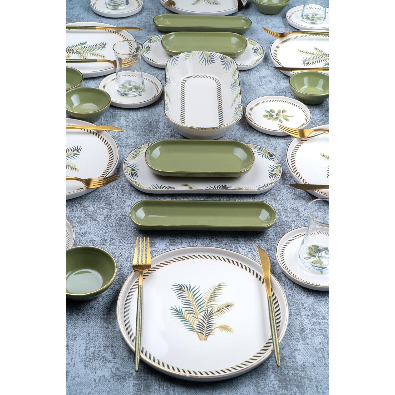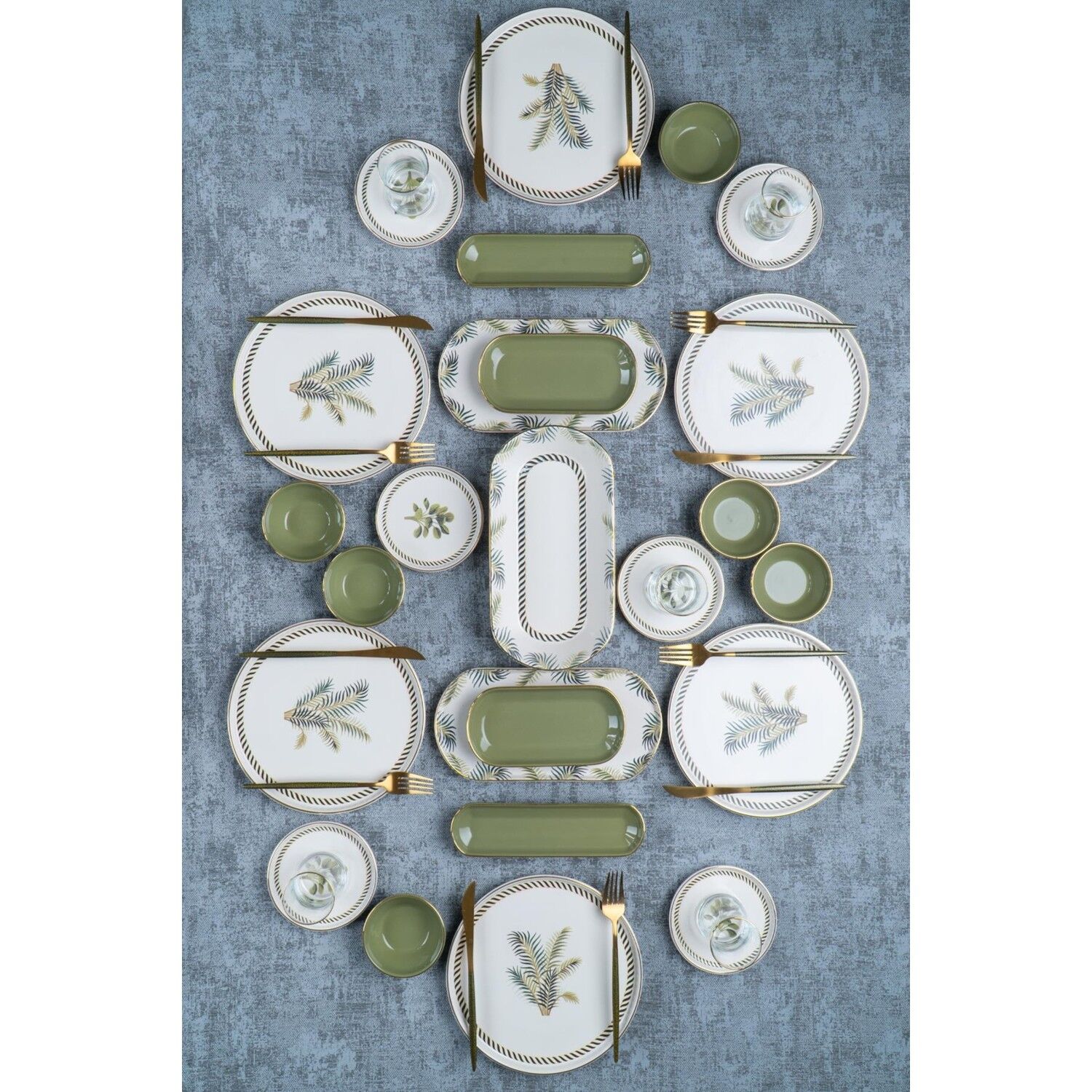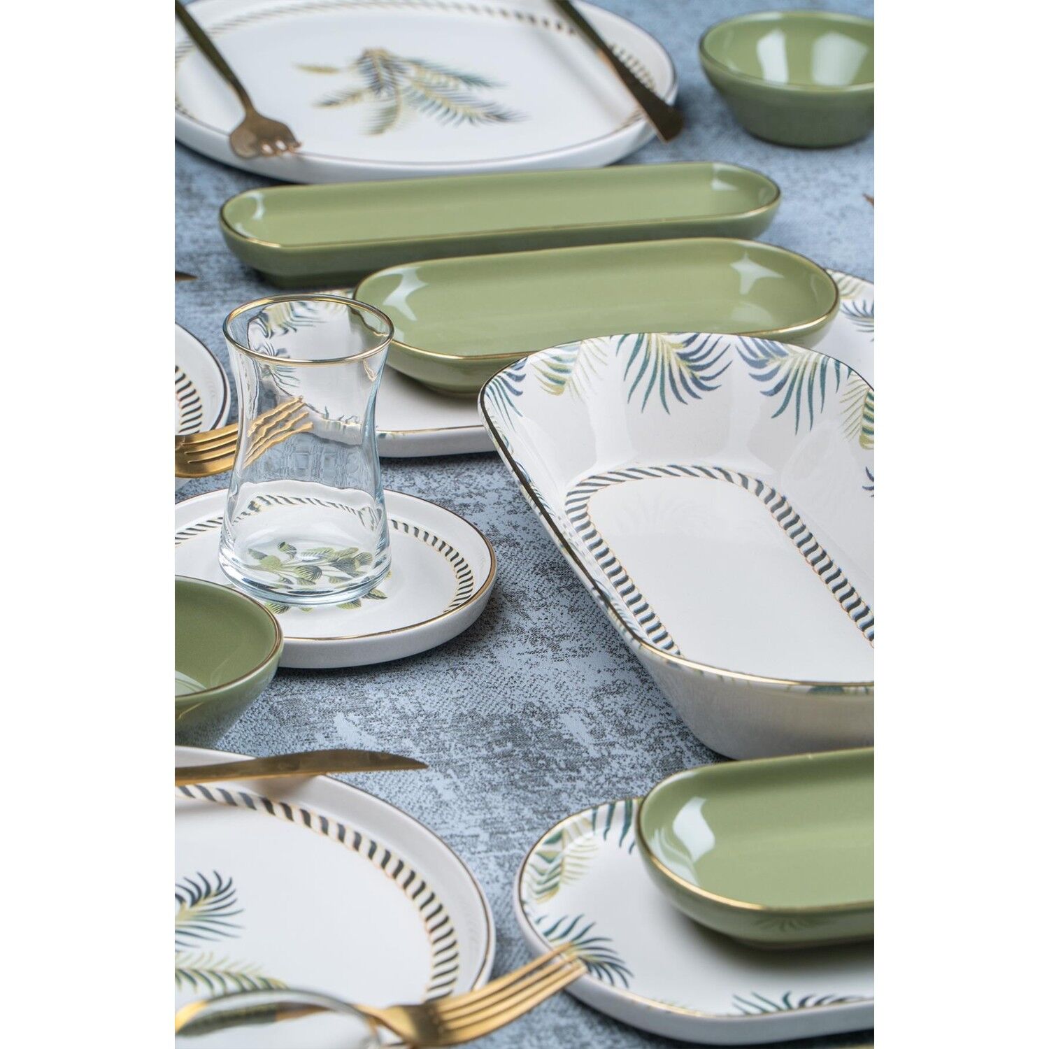 Ürün İçeriği; 6 Adet Servis Tabak: 23 cm 1 Adet Gondol Kase: 29 x 15 x 5 cm 2 Adet Büyük Kayık Tabak: 27 x 13,5 cm 2 Adet Küçük Kayık Tabak: 19 x 9,5 x 2.5 cm 2 Adet Zeytinlik: 23 x 6 x 3 cm 6 Adet Reçellik: 10 x 4 cm 6 Adet Çay Tabağı: 16 cm 6 Adet Çay Bardağı Malzeme; Stoneware Renk; Beyaz