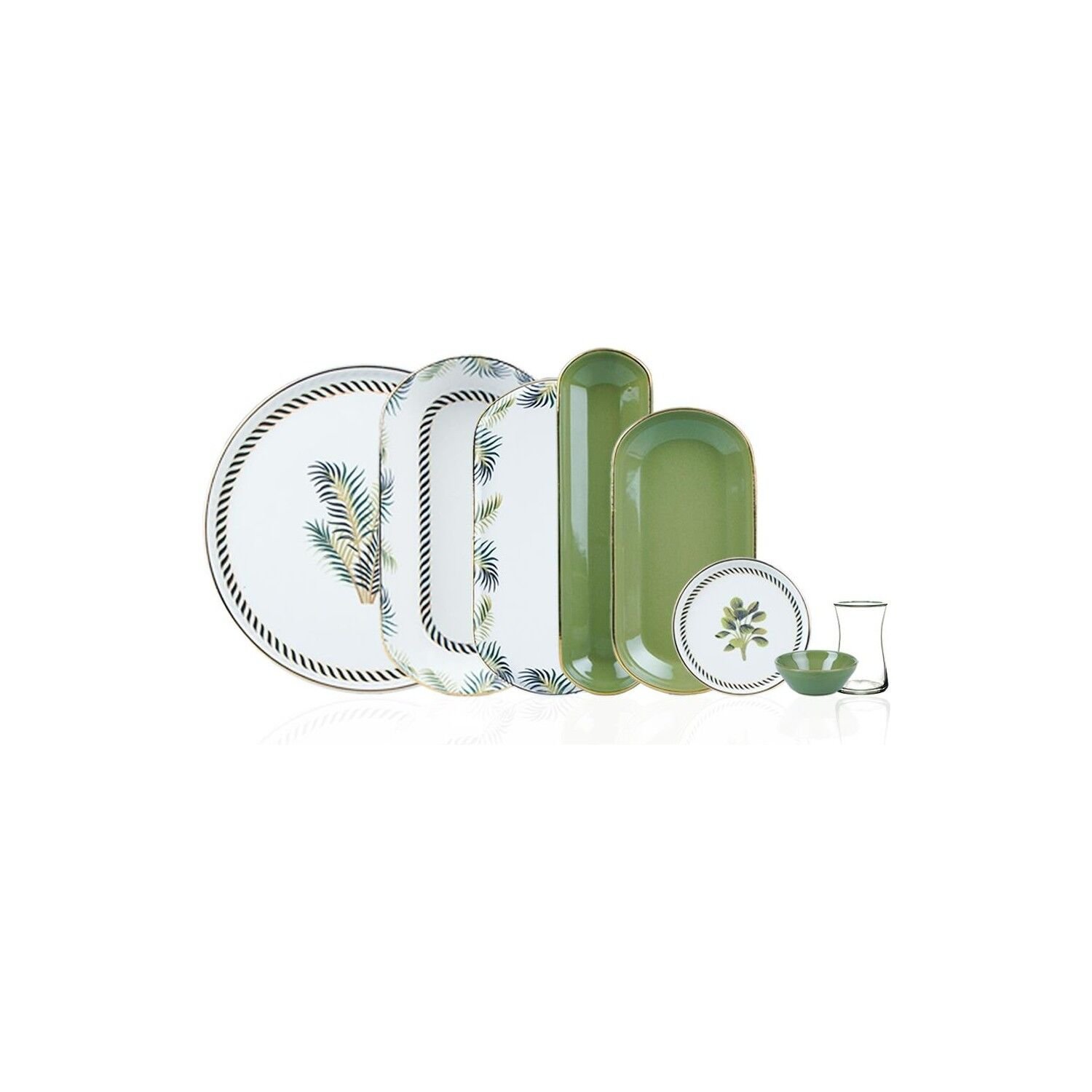 Kahvaltı sofralarınızı Vegas 31 Parça Kahvaltı Takımı sayesinde desenlerin saf büyüsüyle taçlandırın. Yaldızların uzun ömürlü kullanımı için elde yıkanması tavsiye edilmektedir.