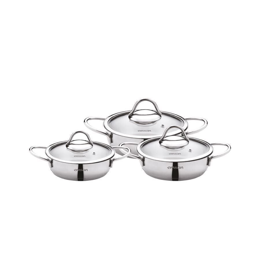 Yiyeceklerin vitamin ve mineral değerlerini kaybetmeden pişmelerini sağlayan Emsan Cemre 6 Parça Paslanmaz Çelik Sahan Seti.