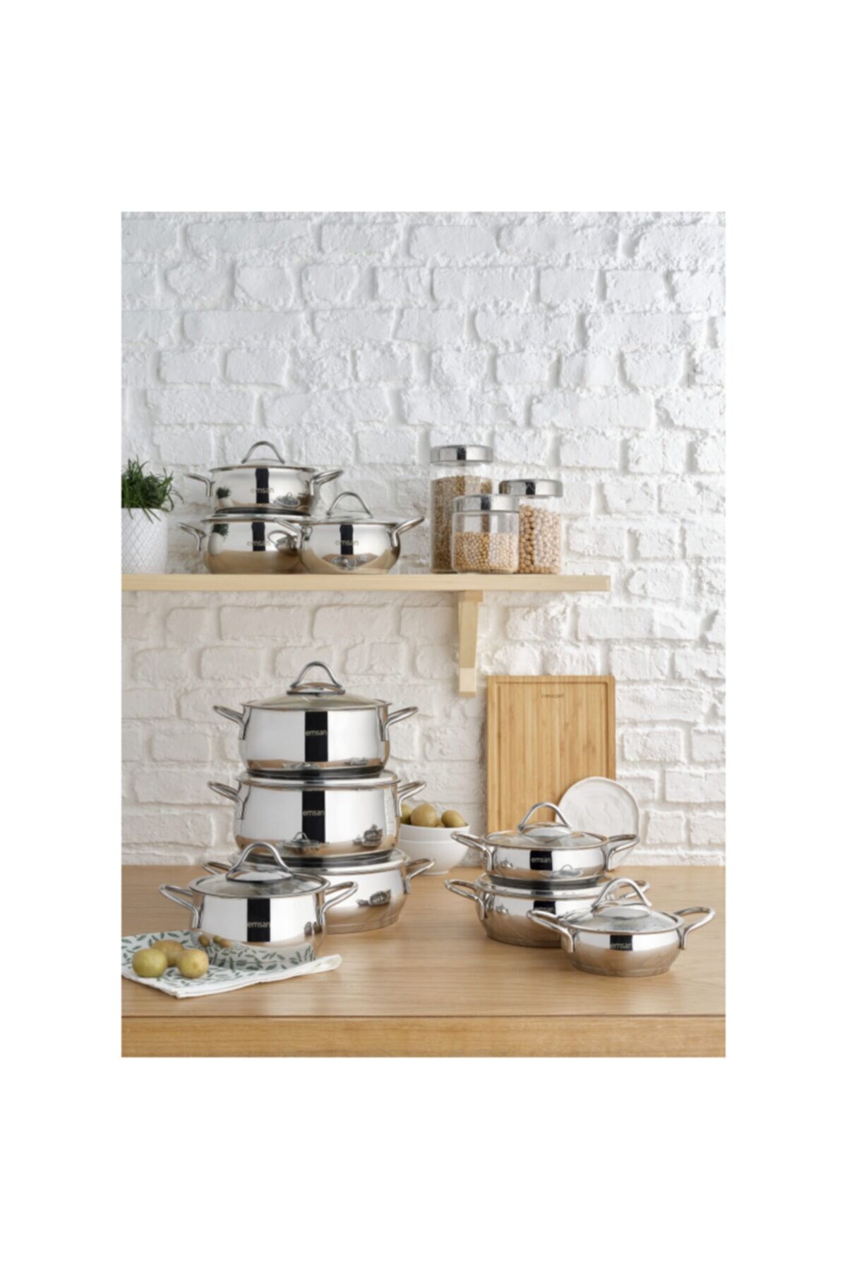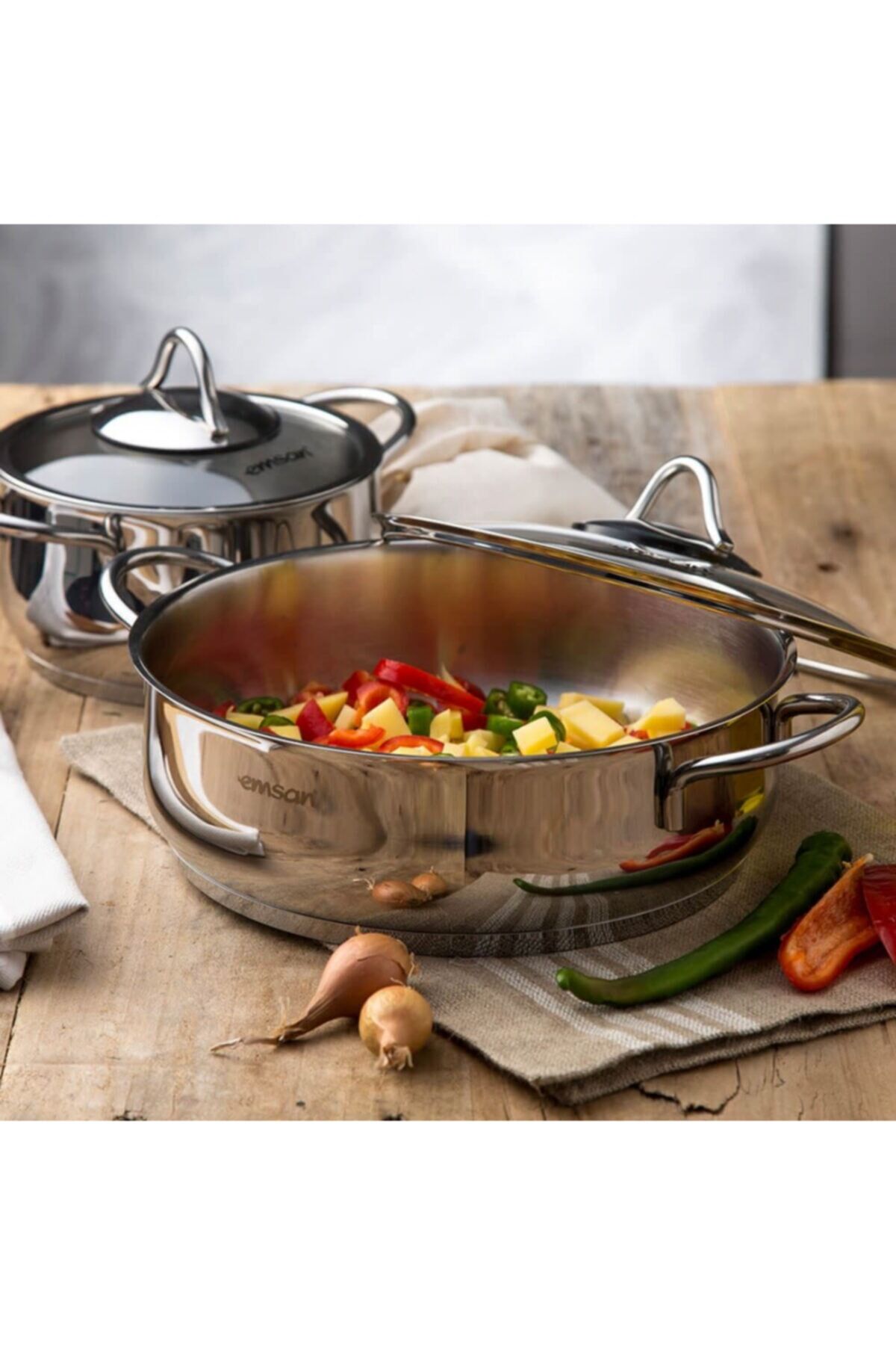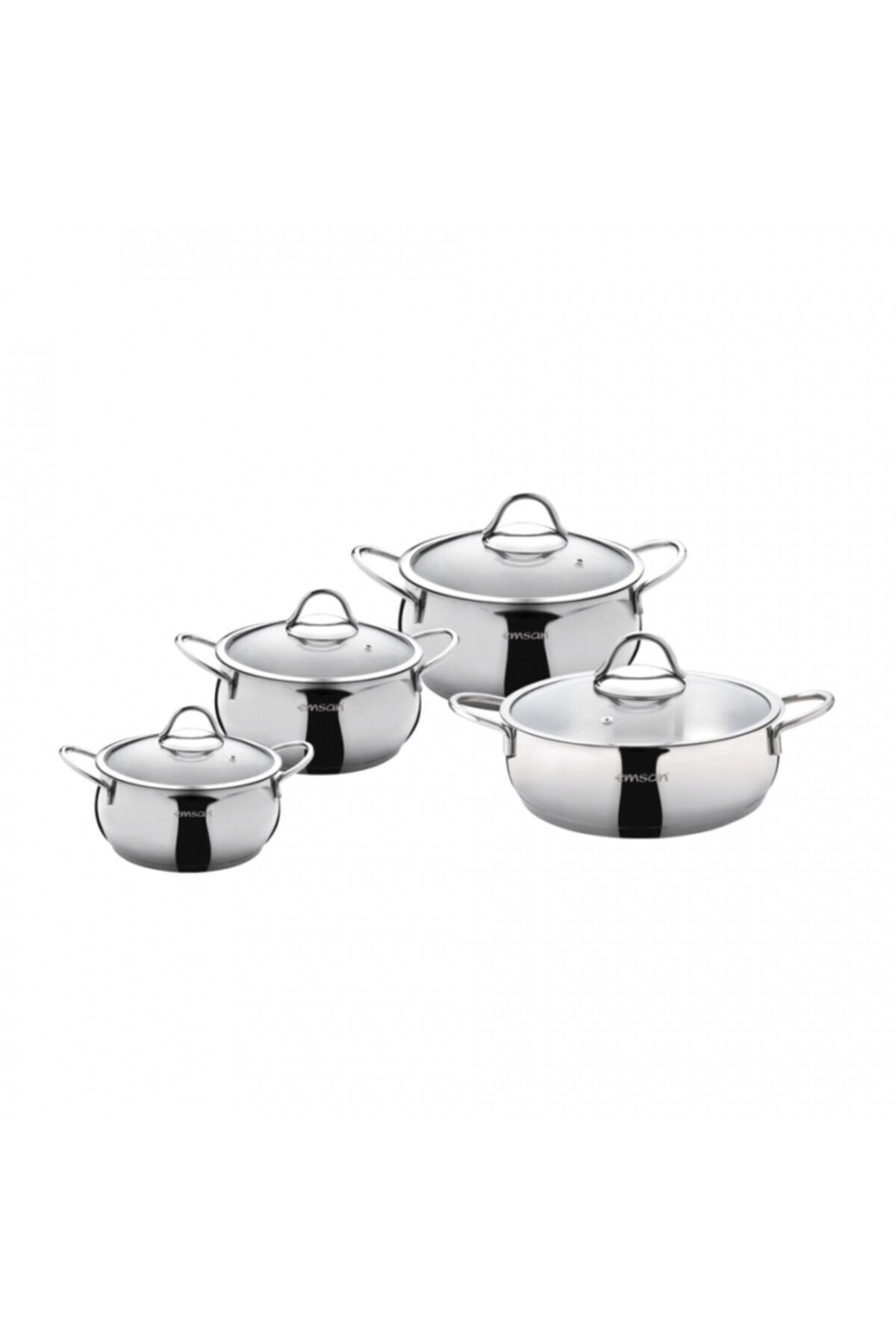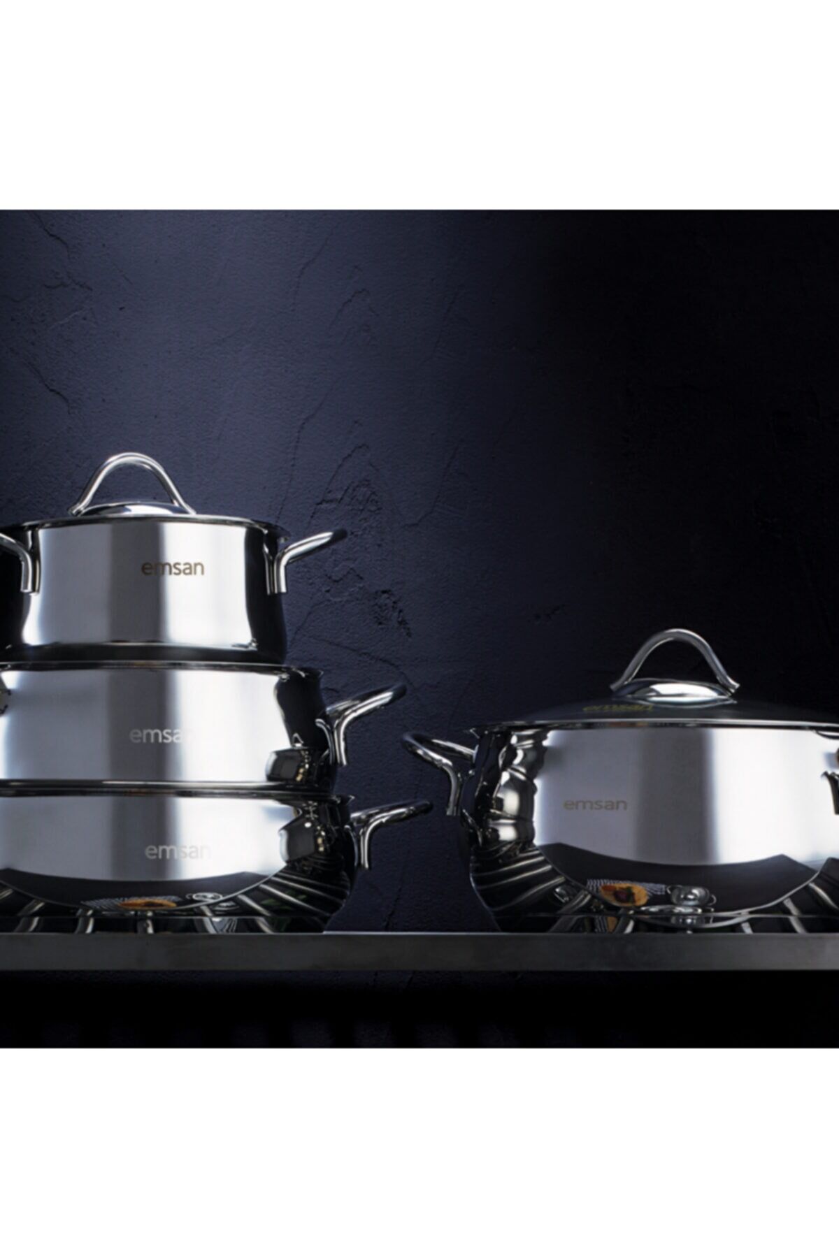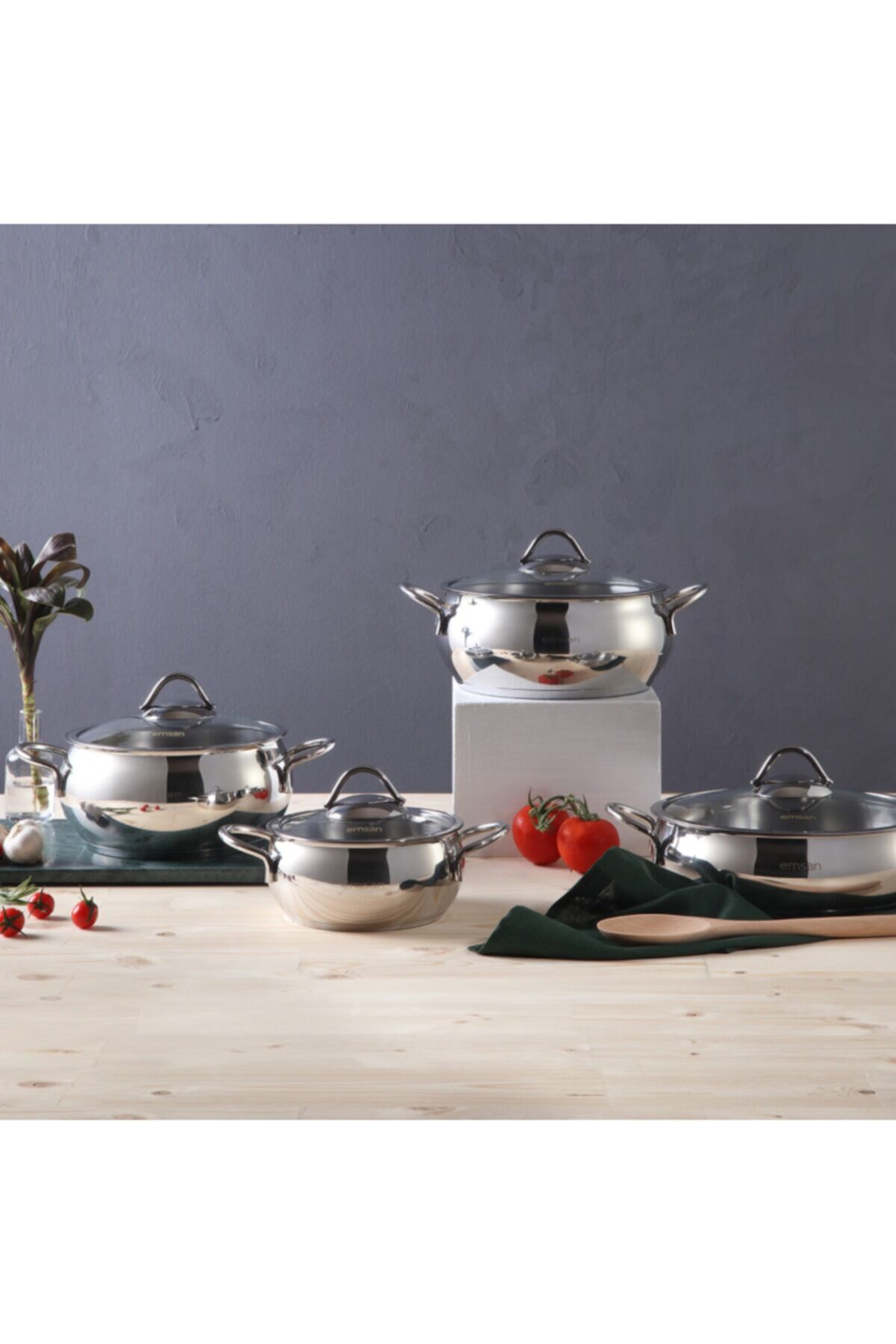 - Günümüz modern mutfaklarına uygun, şık paslanmaz çelik gövde tasarımı ile Emsan Cemre 8 Parça Tencere Seti. Set İçeriği