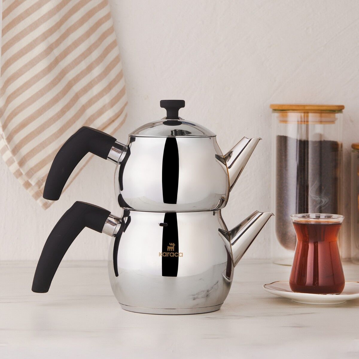 Karaca Alim İndüksiyon Tabanlı Mini Boy Çaydanlık — çayınızı tam tadında demlemek için ideal bir yardımcı. Şık tasarımı ve paslanmaz çelik yapısı ile hem sağlıklı hem de uzun ömürlü bir kullanım sunar.