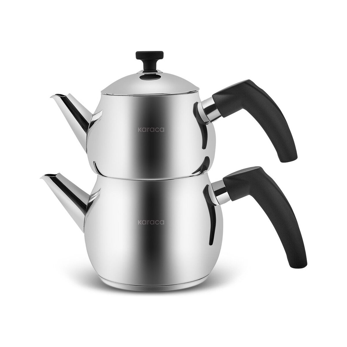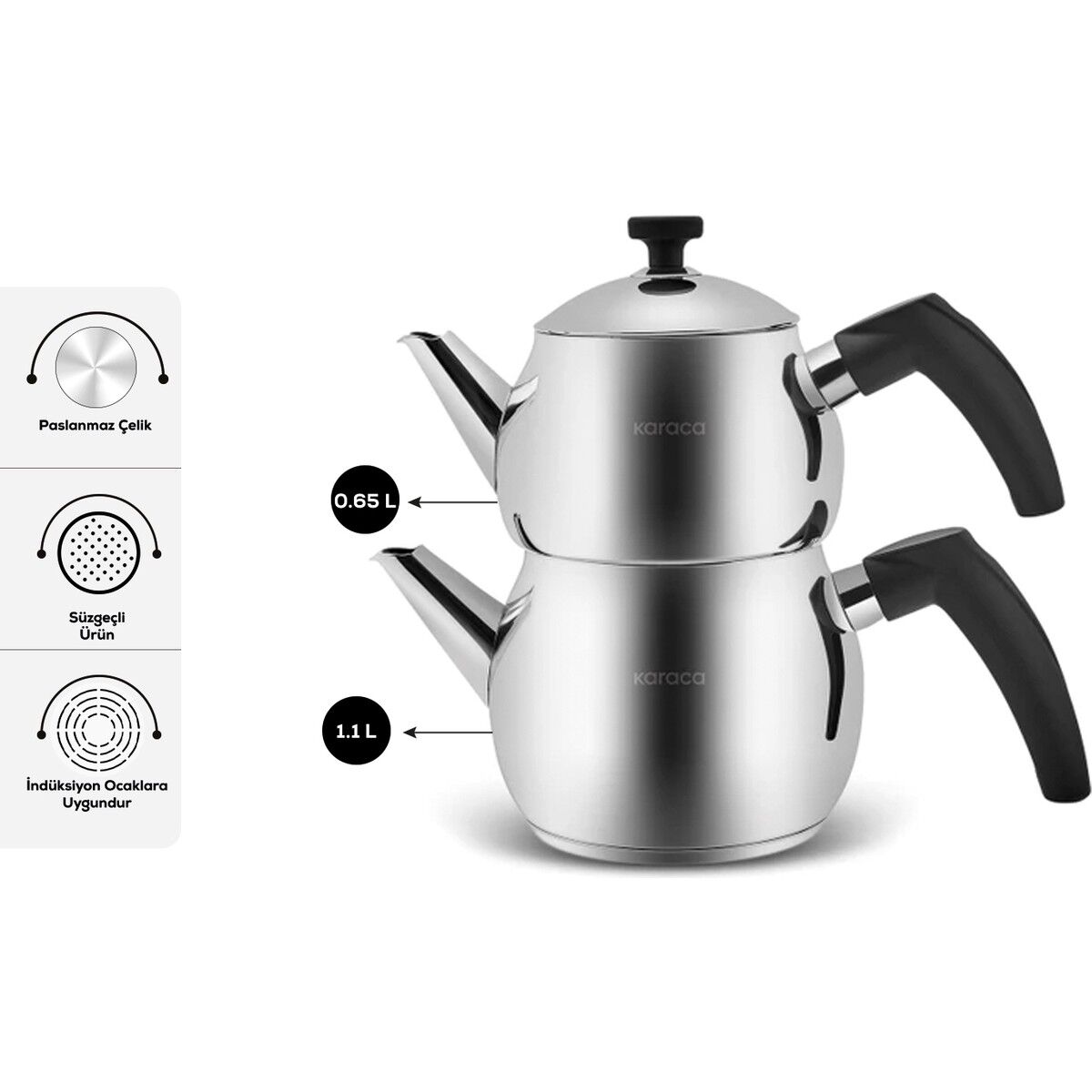 Karaca Paslanmaz Çelik İndüksiyon Tabanlı Siyah Mini Çaydanlık 0,65 L Demlik 1,1 L Su Haznesi
