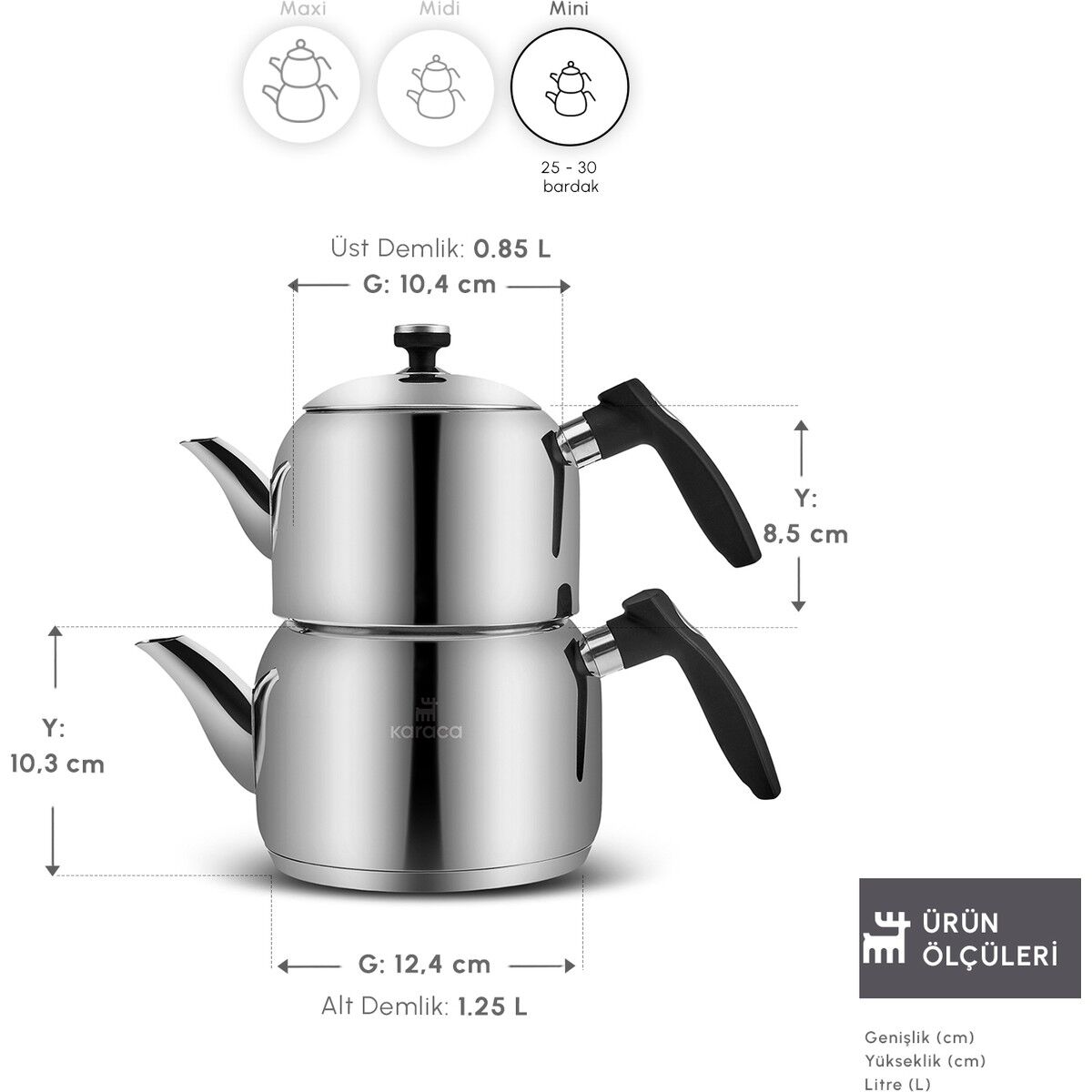 Karaca Asiye İndüksiyon Tabanlı Mini Çelik Çaydanlık Takımı