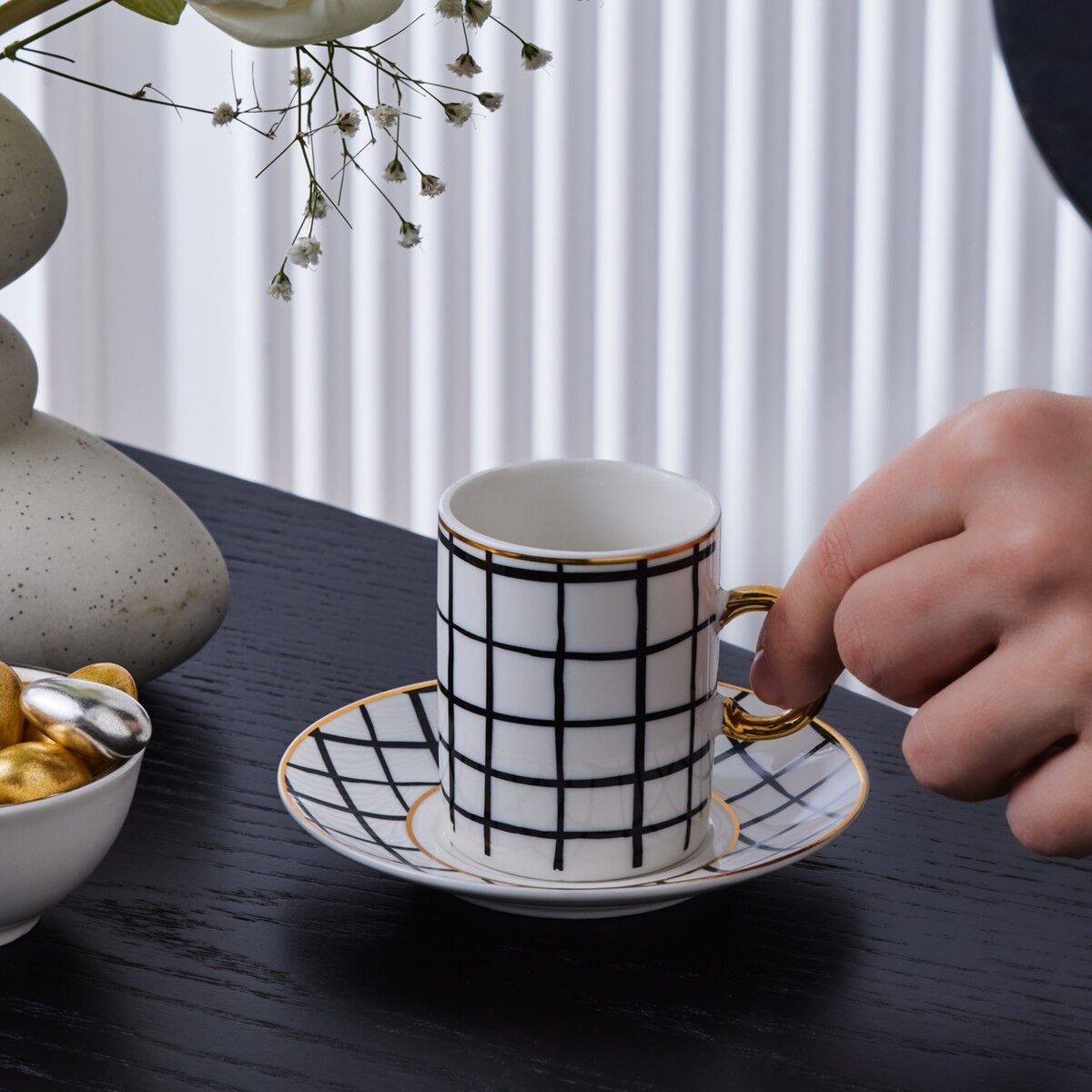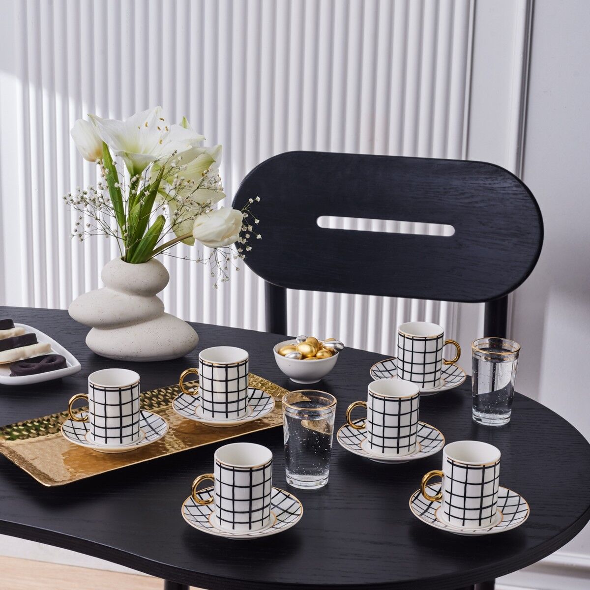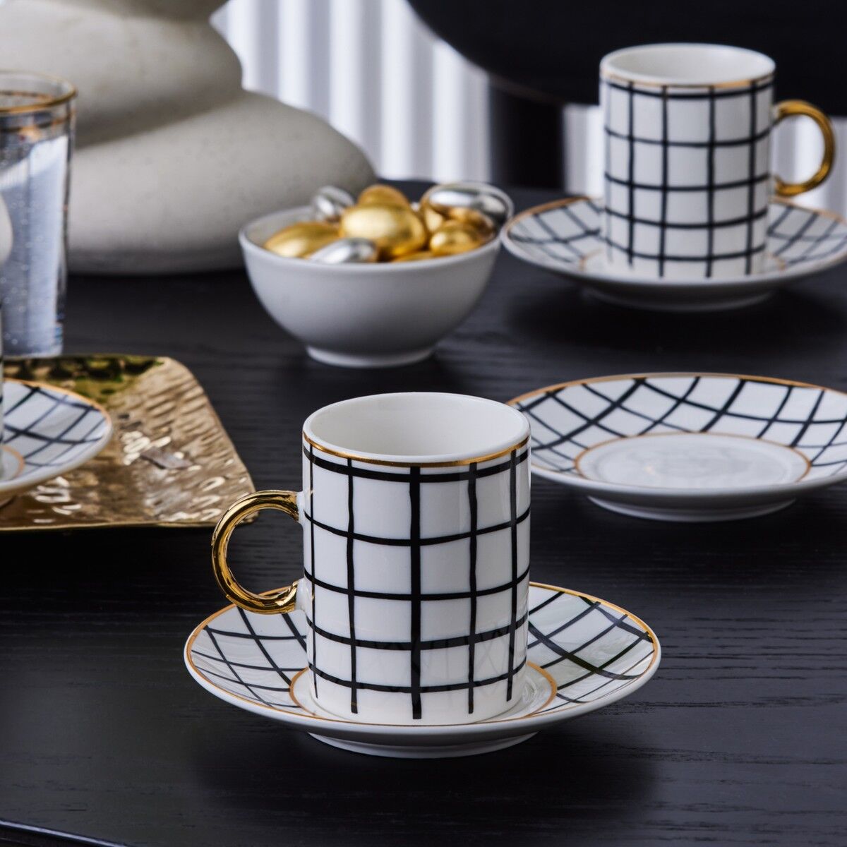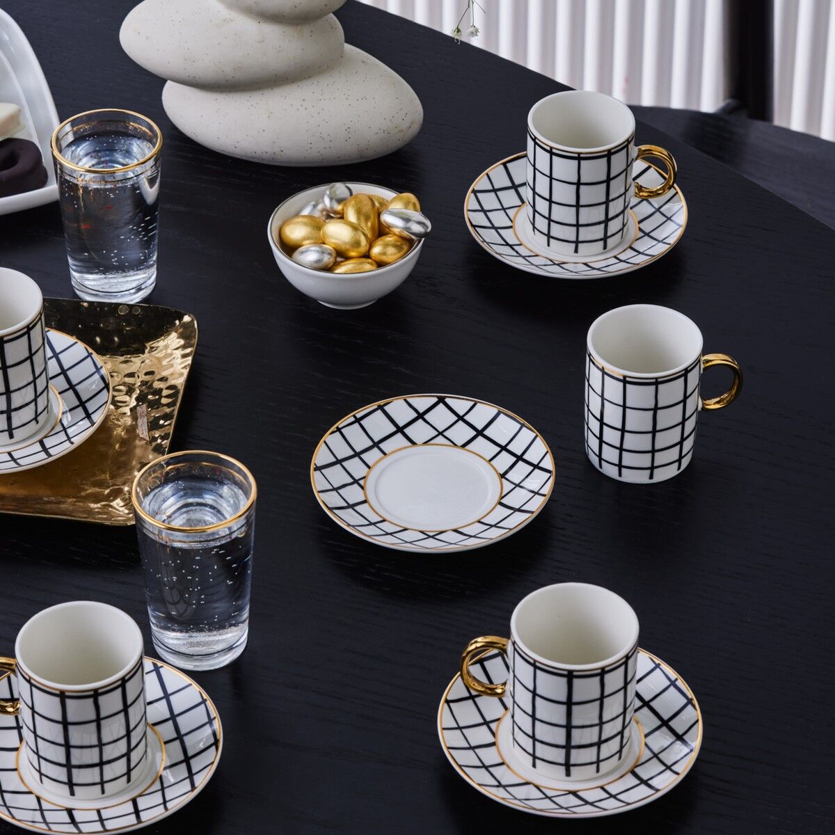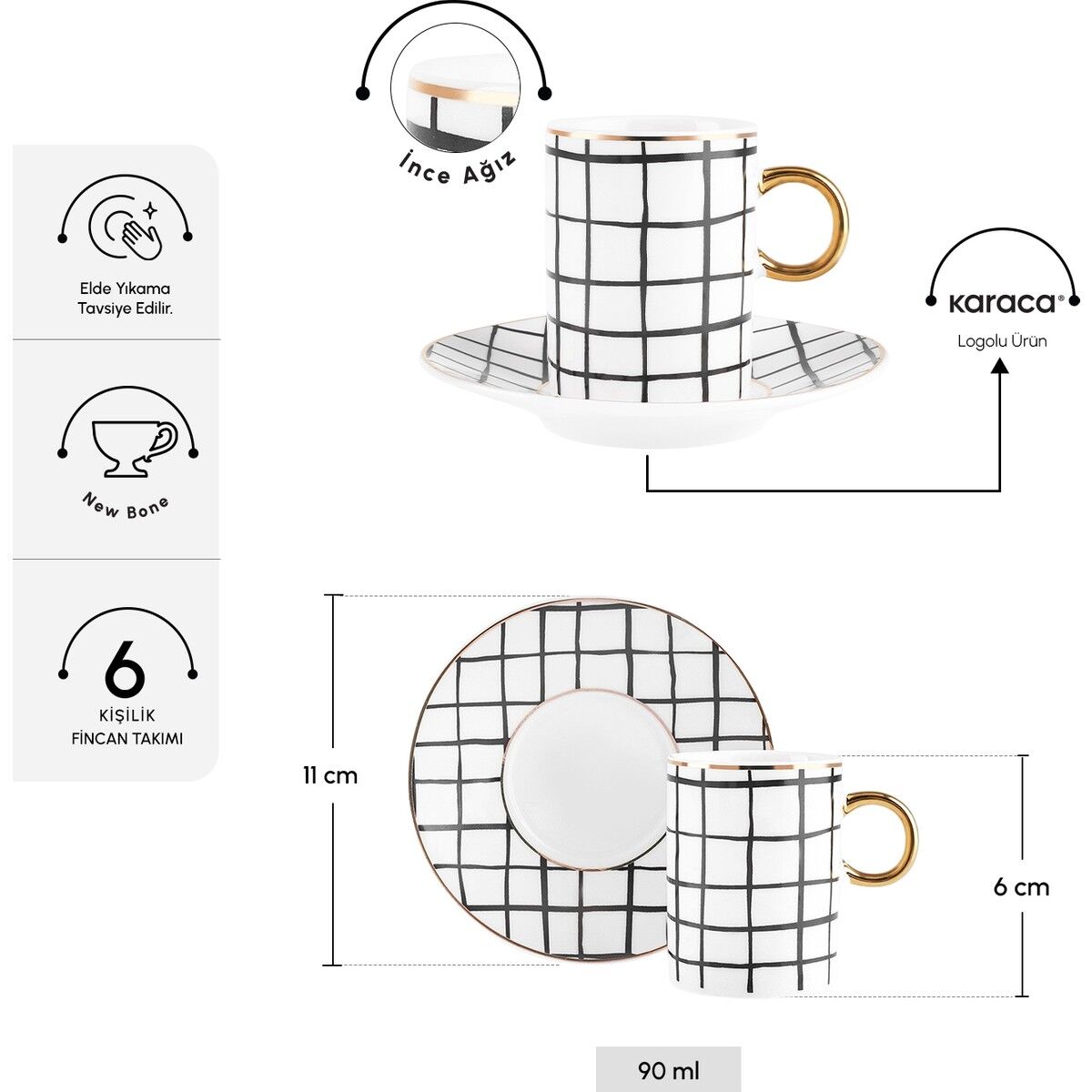 Karaca Perry Çizgili 6 Kişilik Kahve Fincan Takımı 90 Ml