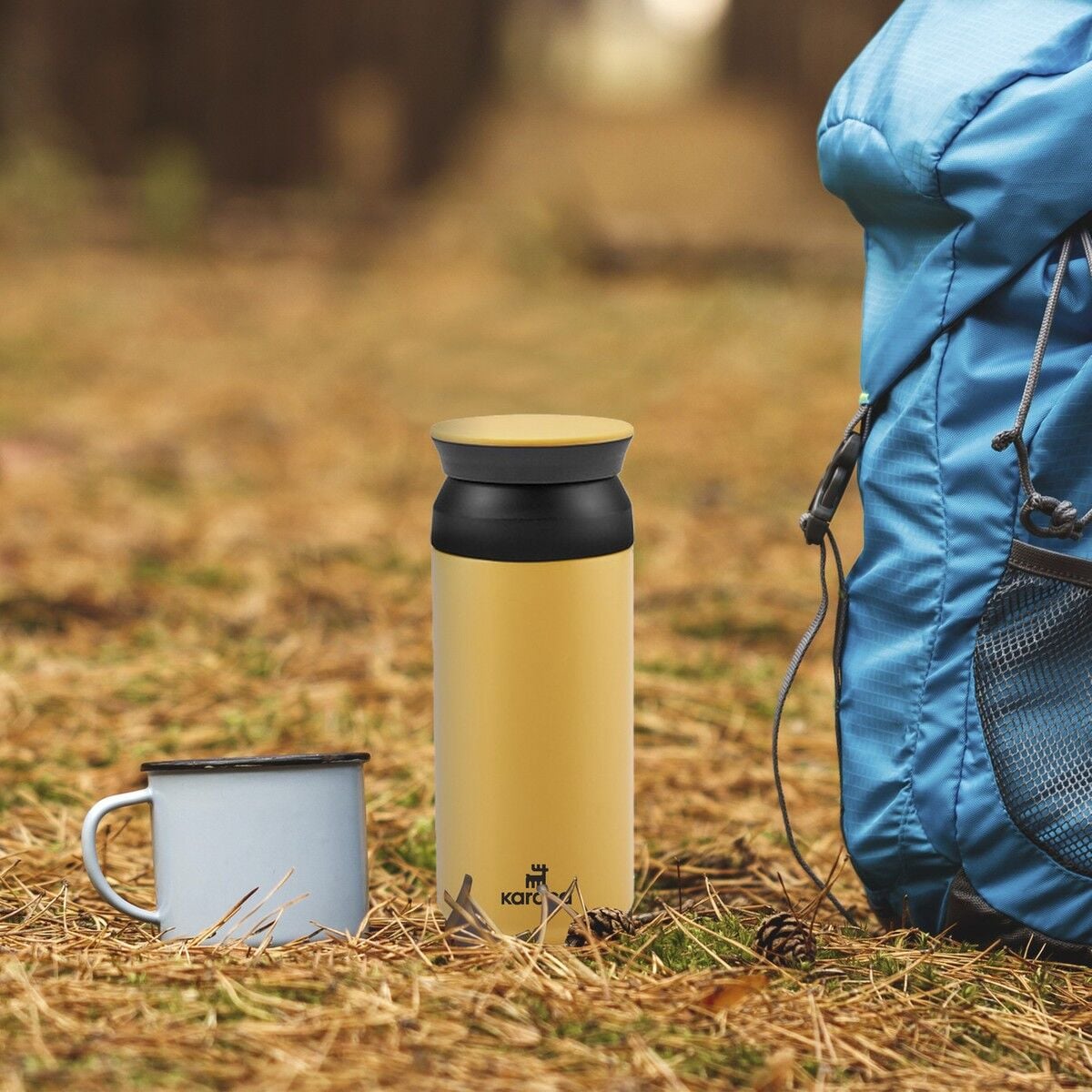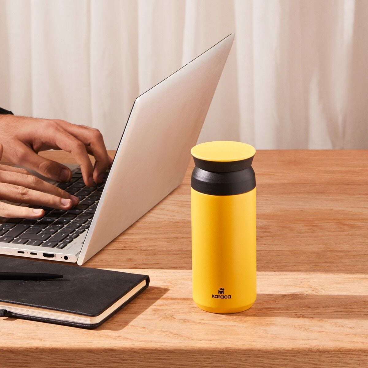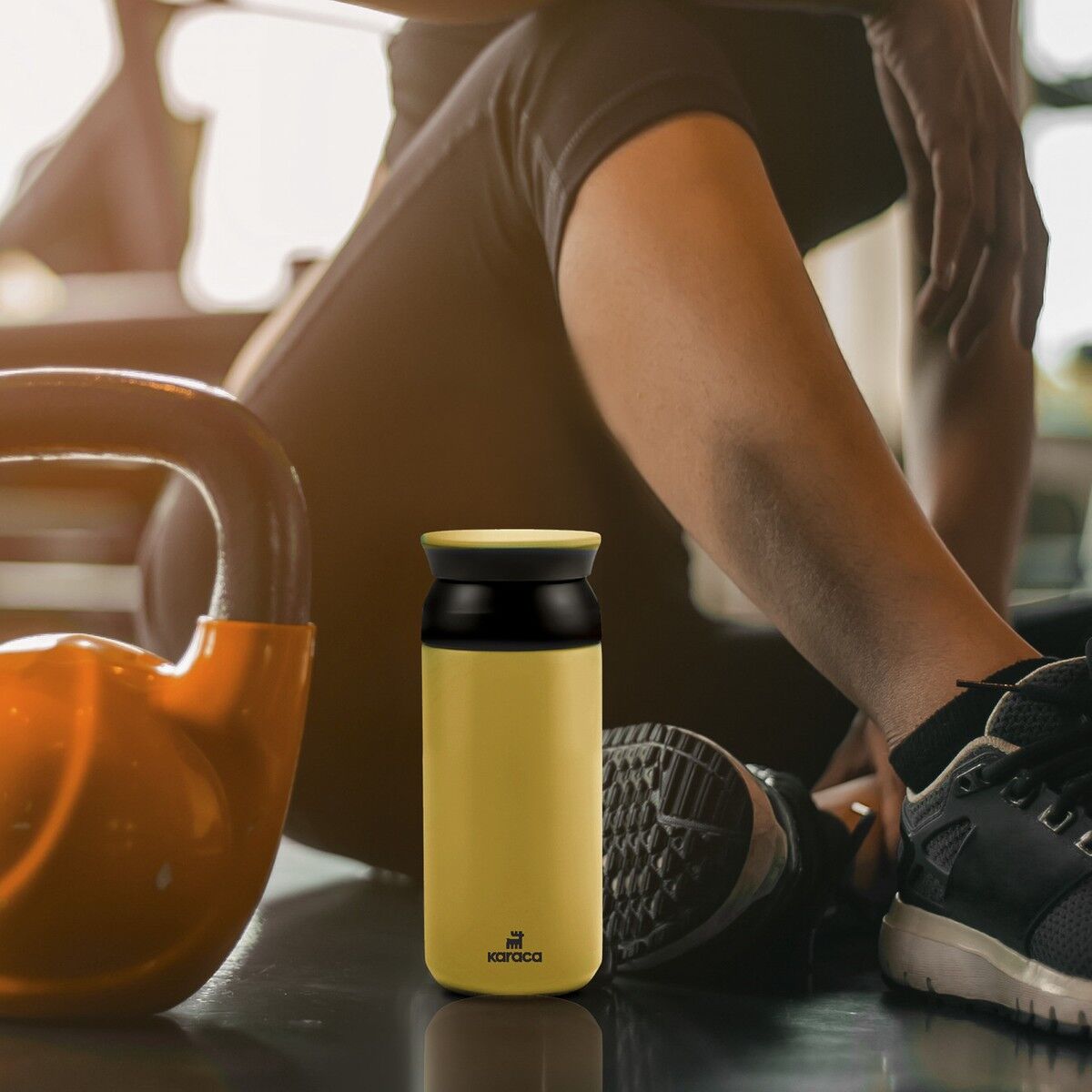 Karaca Rainbow Yellow Paslanmaz Çelik Termos 350 ml Karaca Rainbow Yellow Termos güneş ışığının enerjisini termosunuzla gün boyu yanınızda taşımanızı sağlar. %100 paslanmaz çelik iç haznesi sayesinde sağlıklı ve uzun ömürlü bir kullanım sunar. 8 saate kadar sıcak ve soğuk tutma özelliğine sahiptir. Vakumlu kapağı içeceklerinizi sızdırmaz. Ergonomiktir. Kolay tutuşu ile gün boyu yanınızda taşıyabilir, seyahatlerinizde de güvenle kullanabilirsiniz.