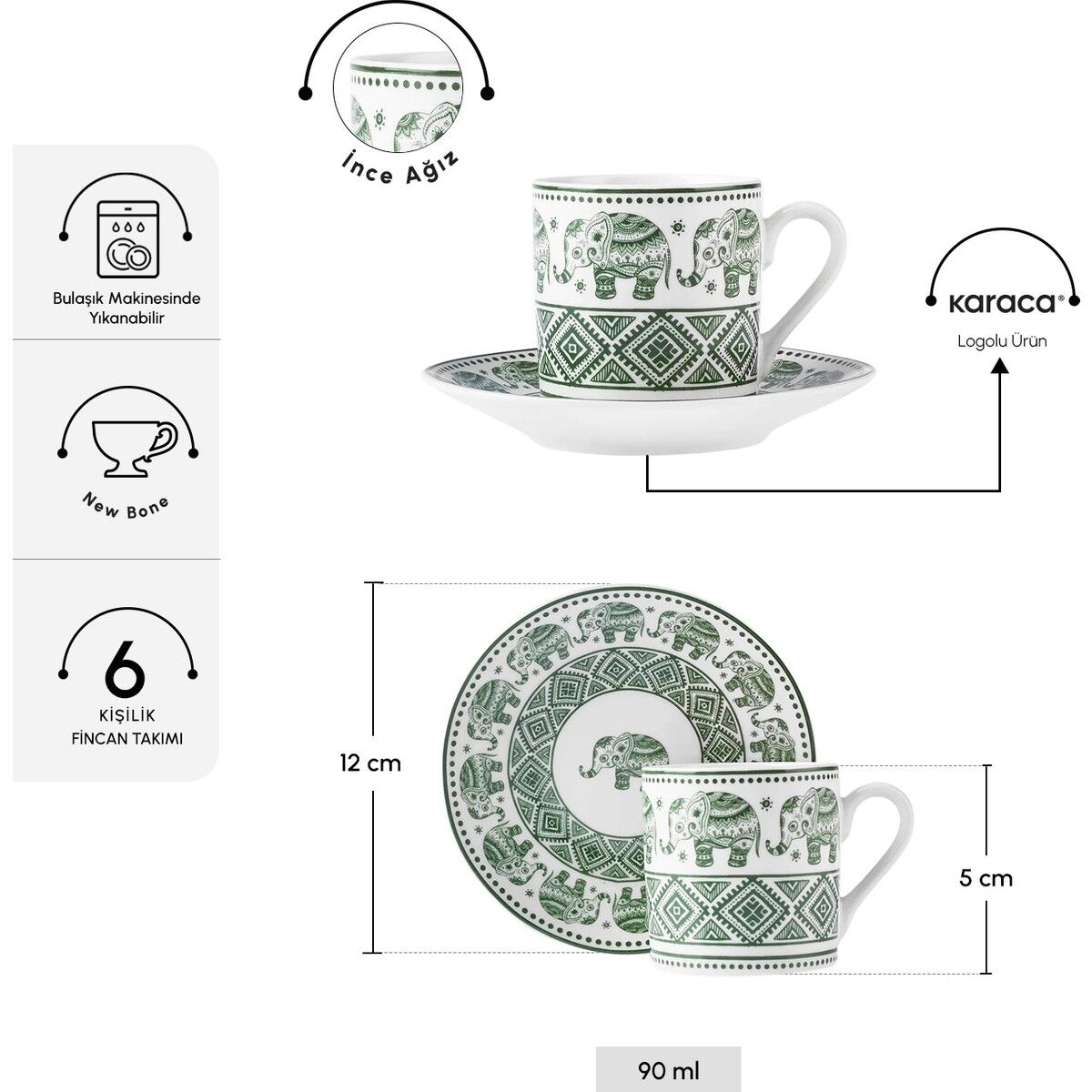 Karaca Teri 6 Kişilik Kahve Fincanı 90 ml