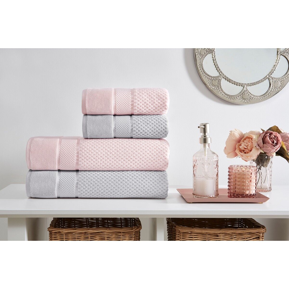 Banyo Havlusu:90x150 cm (2 Adet), El Havlusu:50x90 cm (2 Adet),