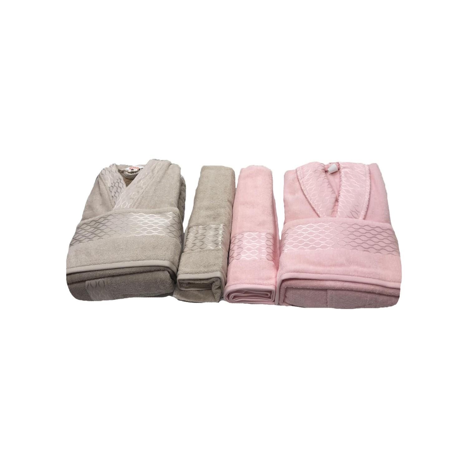 %100 Pamukİçerik: 70X150 CM Banyo Havlusu (2 Adet), 50X80 CM Baş Havlusu (2 Adet) Bornoz (Bay: L Bayan:M Beden)