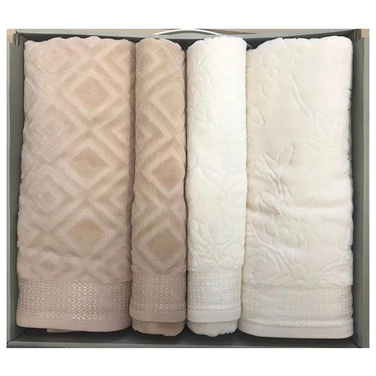 Banyo Havlusu: 70x150 cm (2 Adet), El Havlusu: 50x80 cm (2 Adet)