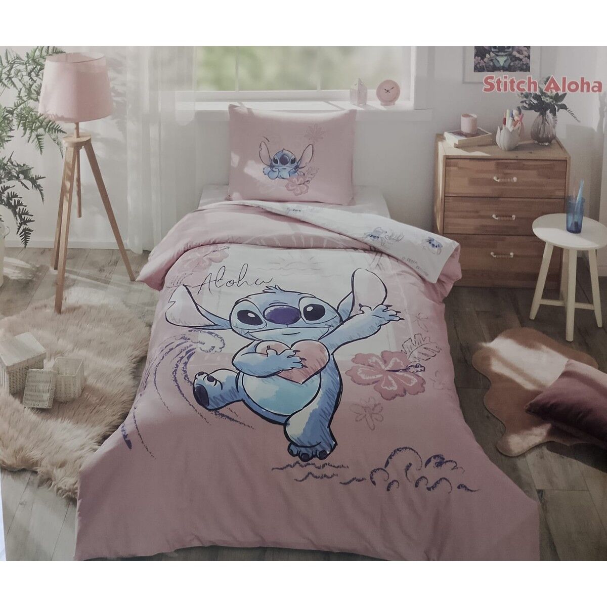 Özdilek Tek Kişilik Disney Lisanslı Lastikli Çarşaf Çocuk Nevresim Takımı Stitch Aloha Mint