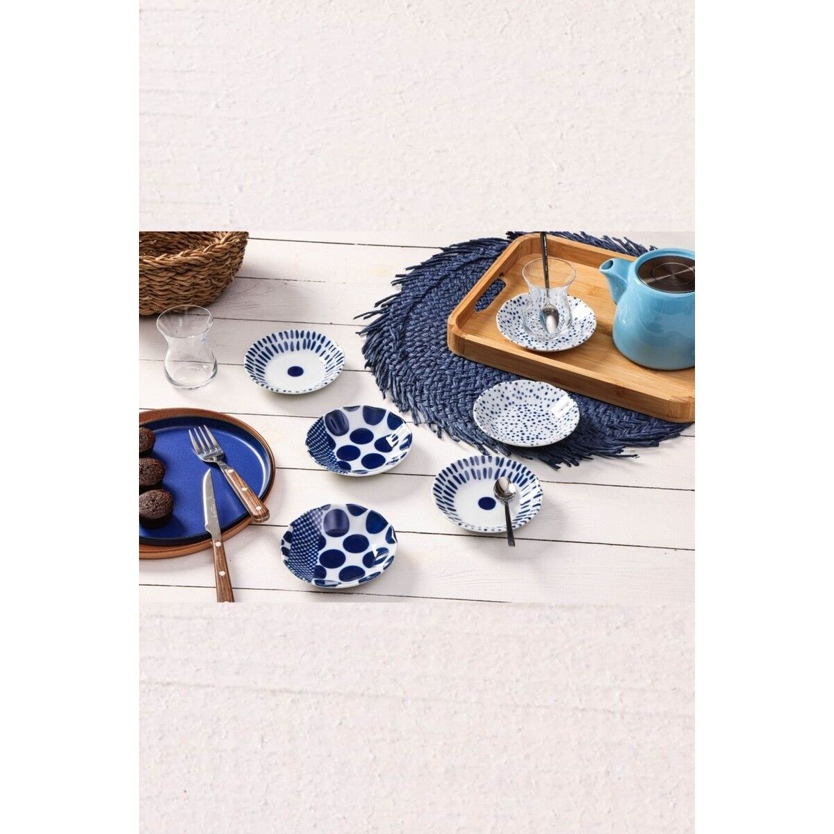- Porland Spotty Karma Desen 6'lı Çay Tabağı 11cm