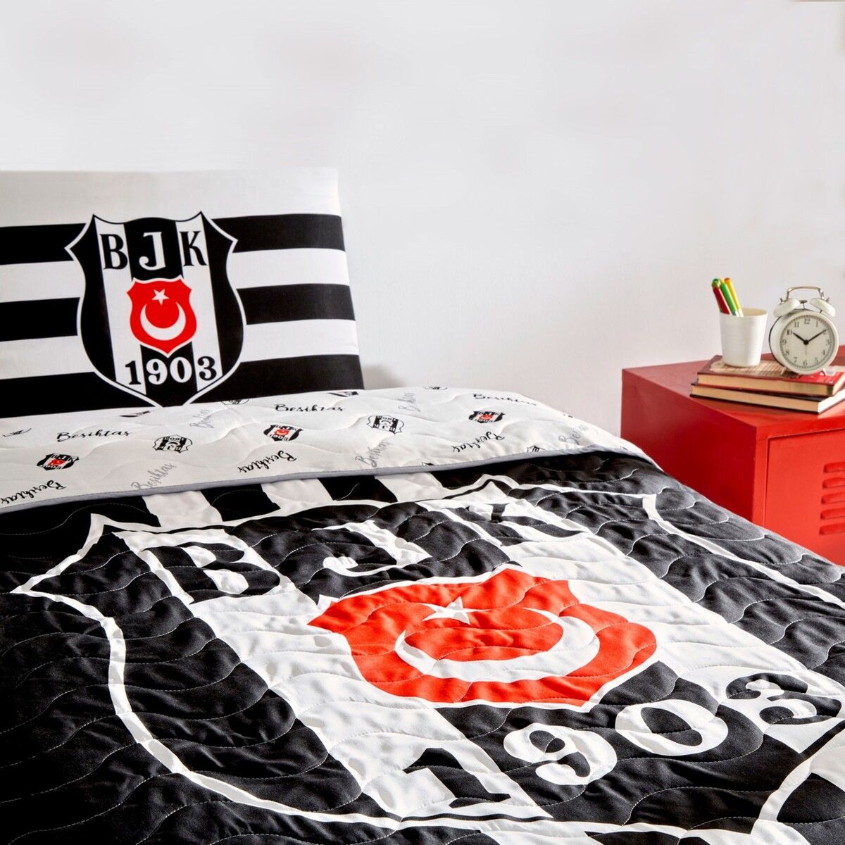 TAÇ TEK KİŞİLİK LİSANSLI YATAK ÖRTÜSÜ SETİ BEŞİKTAŞ STRİPE