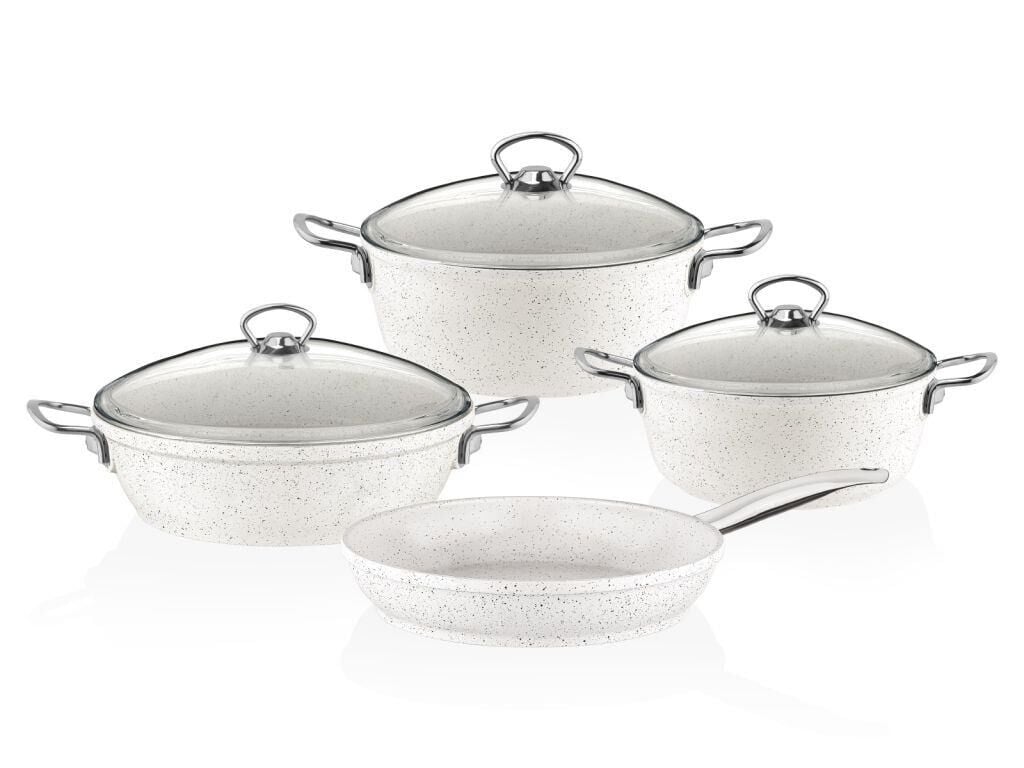 Taç Gravita Döküm 4'lü 7 Parça Tencere Seti Beyaz
